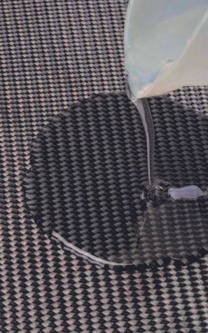 The variable density cabinet sections are progressively laid up on the tooling, firstly with variable layer(s) of pre-impregnated carbon fibre (pre-preg), then proprietary sandwich material and then more layers of carbon fibre pre-preg.